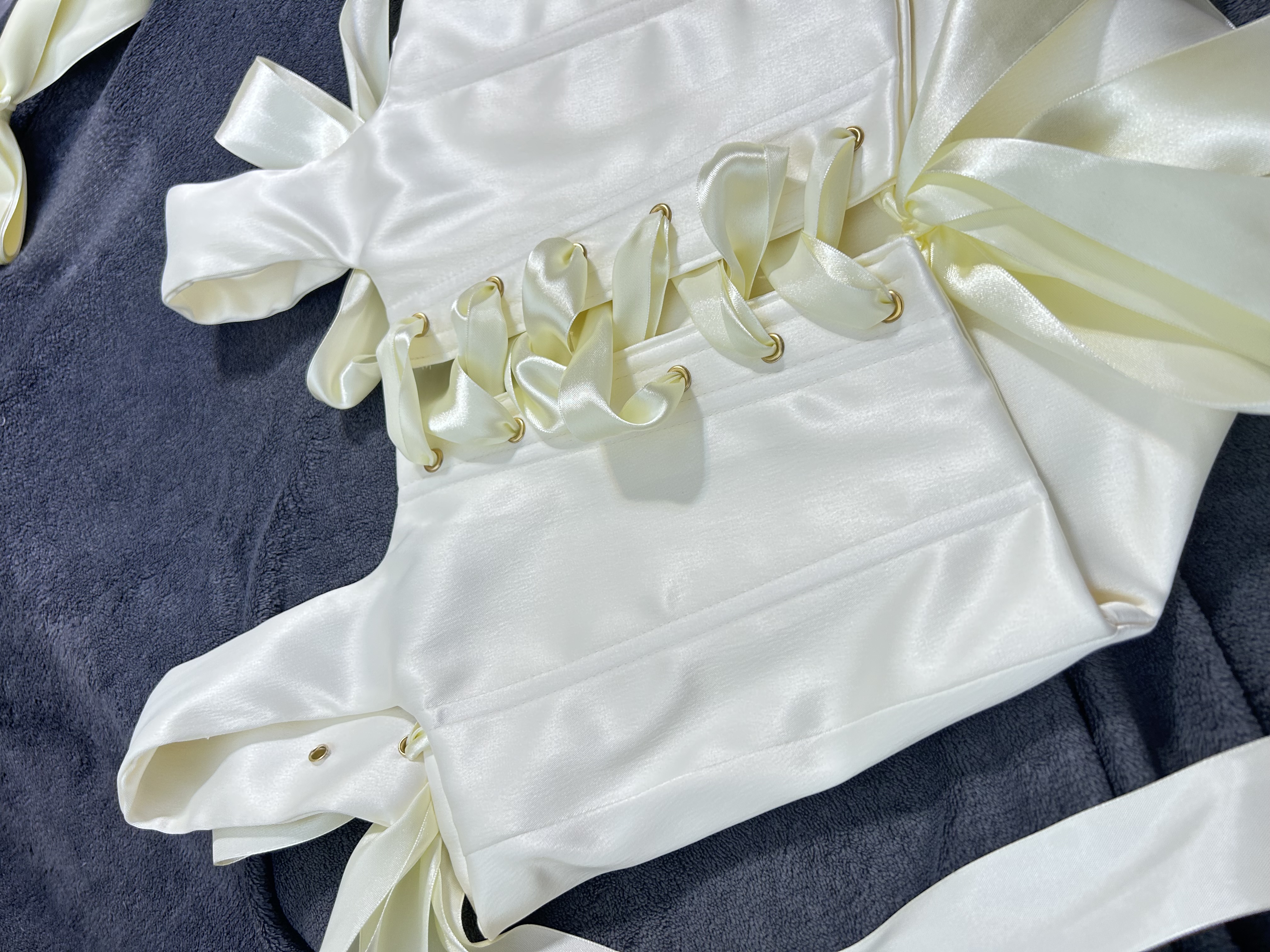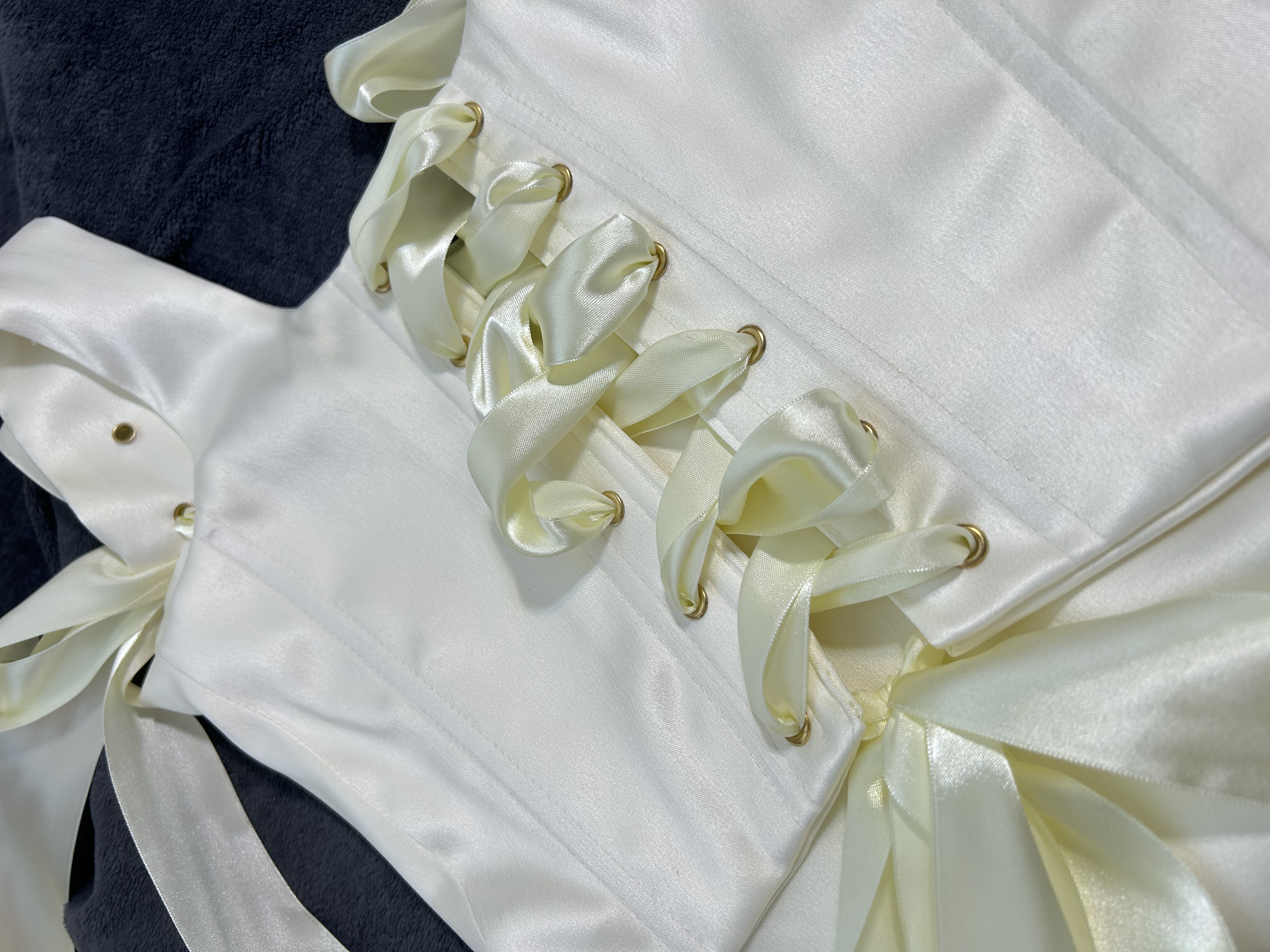 Buttercream Dream e un corset handmade în tonuri calde de crem untos, cu funde delicate din tafta satinata💛