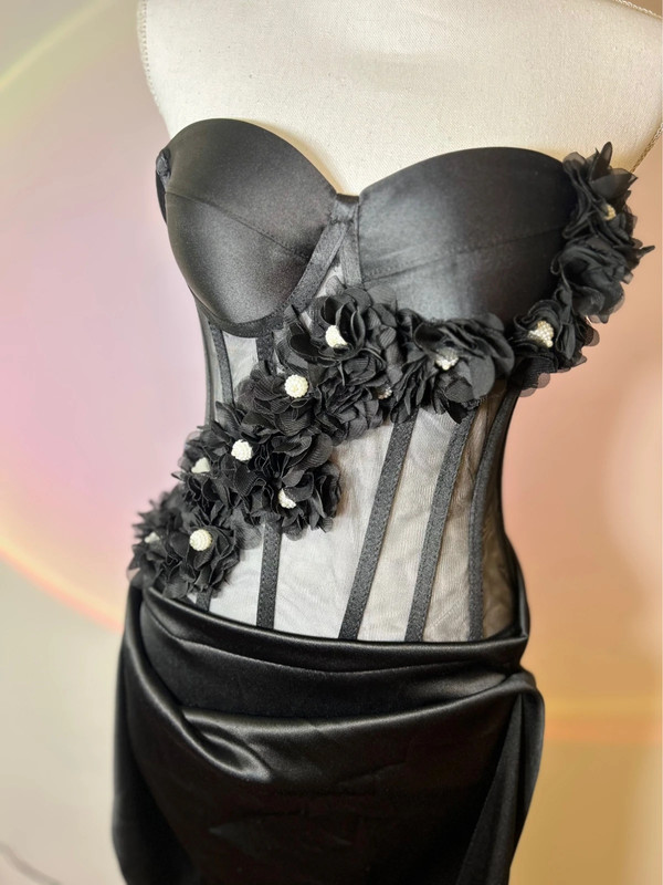 Un omagiu adus feminității misterioase, Noir Fleur este un corset sofisticat ce îmbină satinul negru cu tulul transparent, conturat de balene elegante pentru o siluetă sculptată.🖤