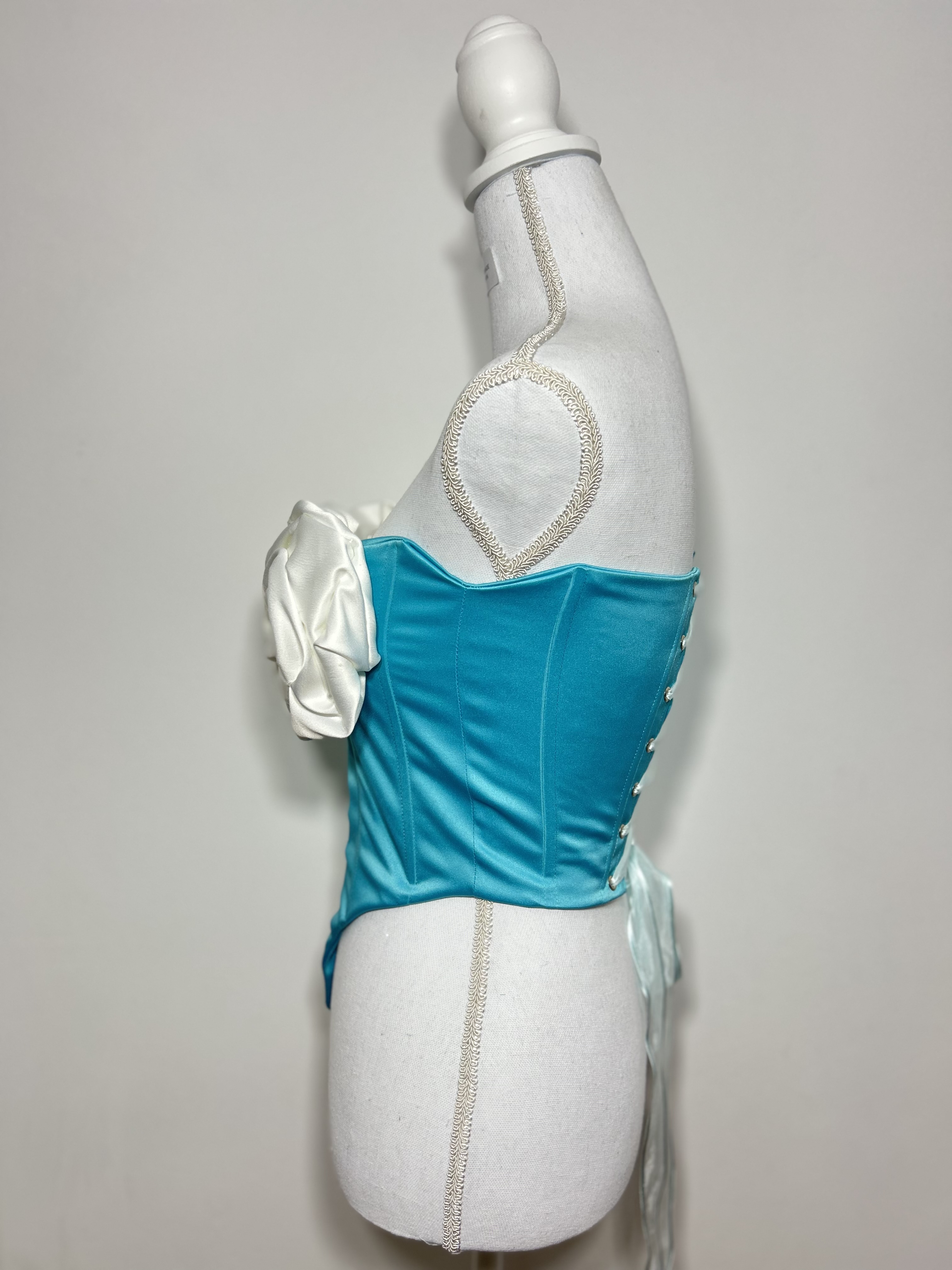Un corset cu o eleganță aparte –🪡Elysian Bloom – îmbină frumusețea subtilă a turcoazului cu delicatețea trandafirilor albi. Inspirat de armonia naturală și rafinamentul suprem, acest corset transformă orice ținută într-o capodoperă a stilului.💙