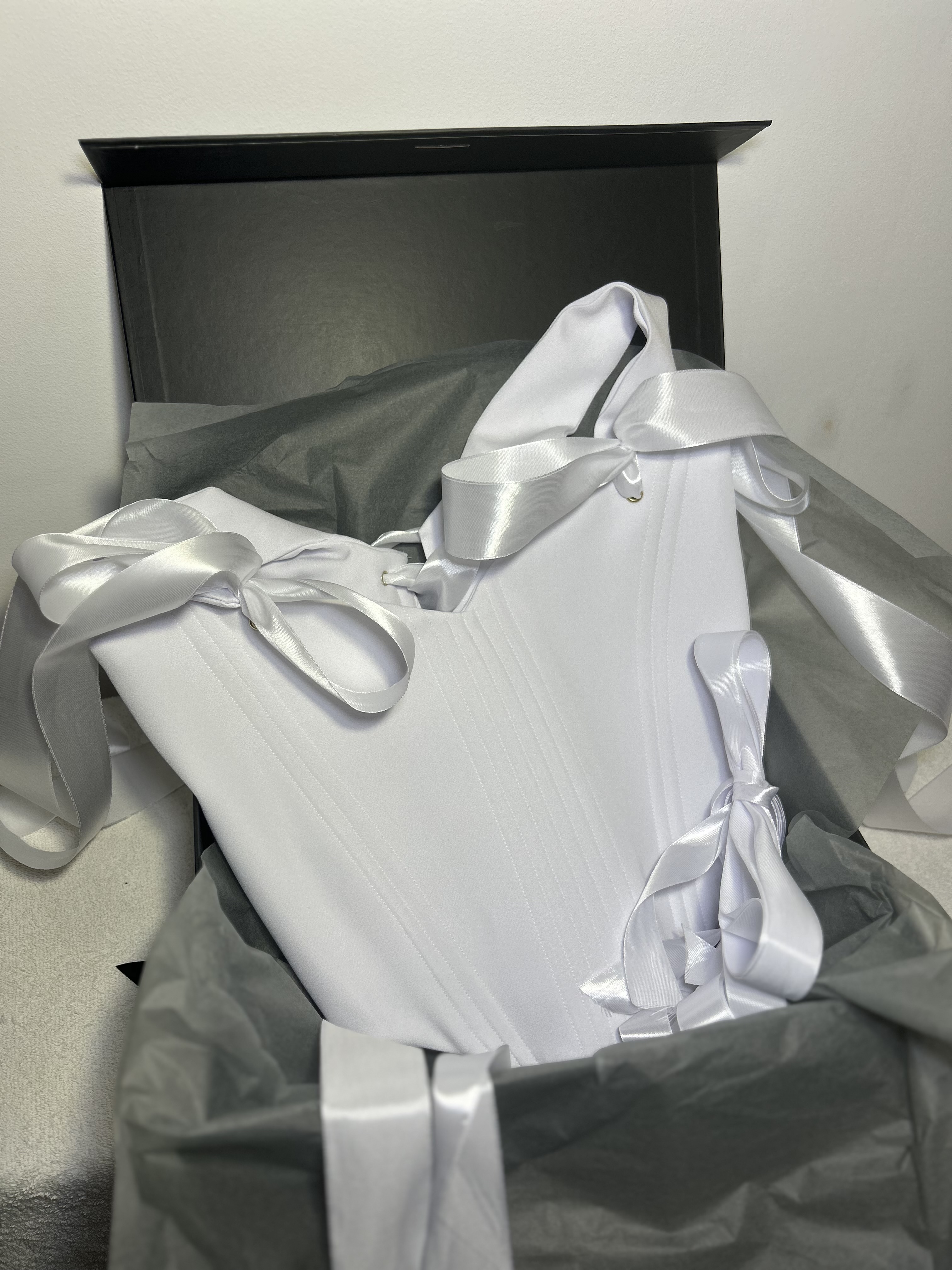 Corsetul Pure emană eleganță și rafinament prin designul său minimalist,material fin și confortabil ,completat de panglici delicate ce oferă un aer romantic🤍