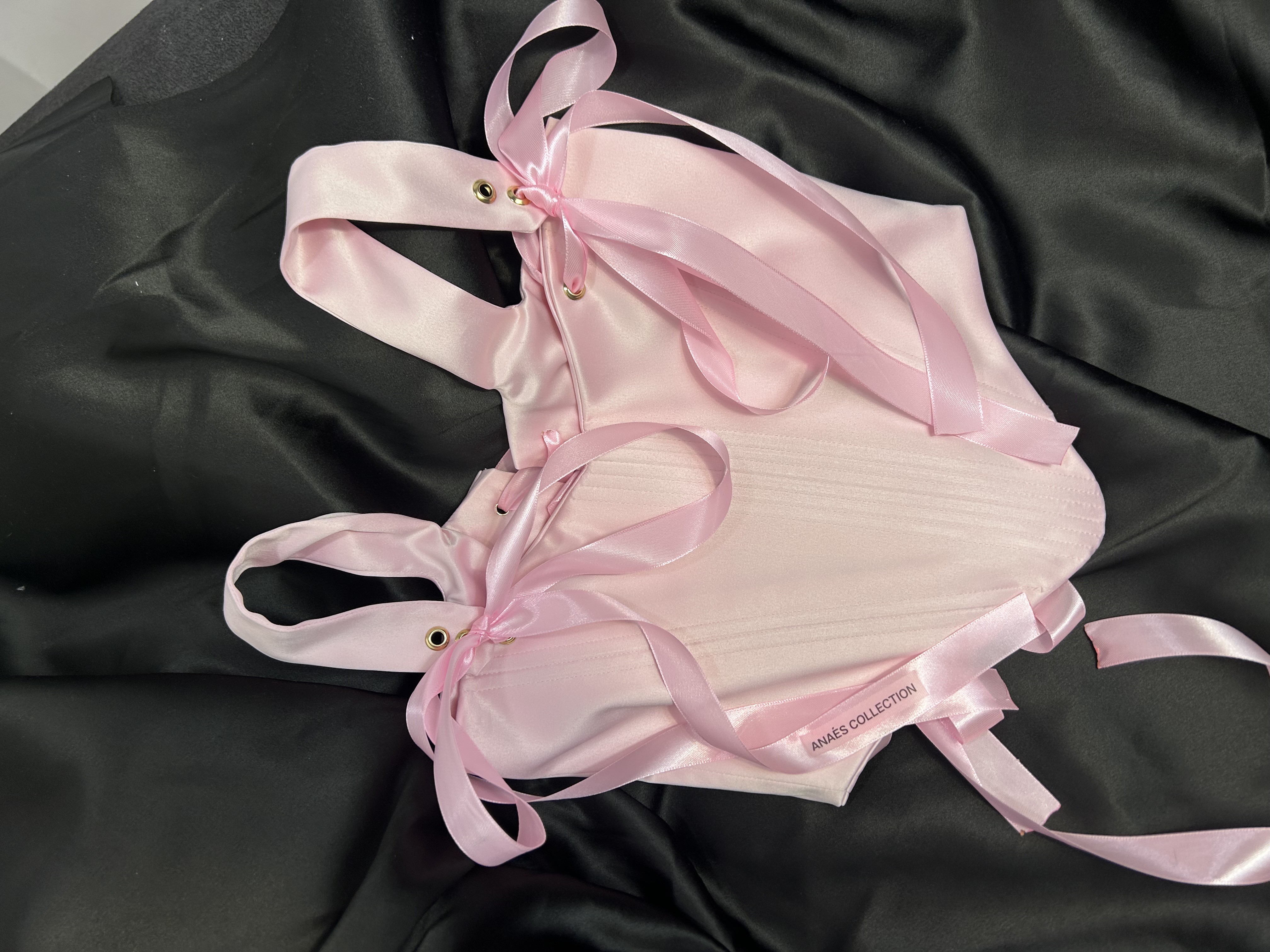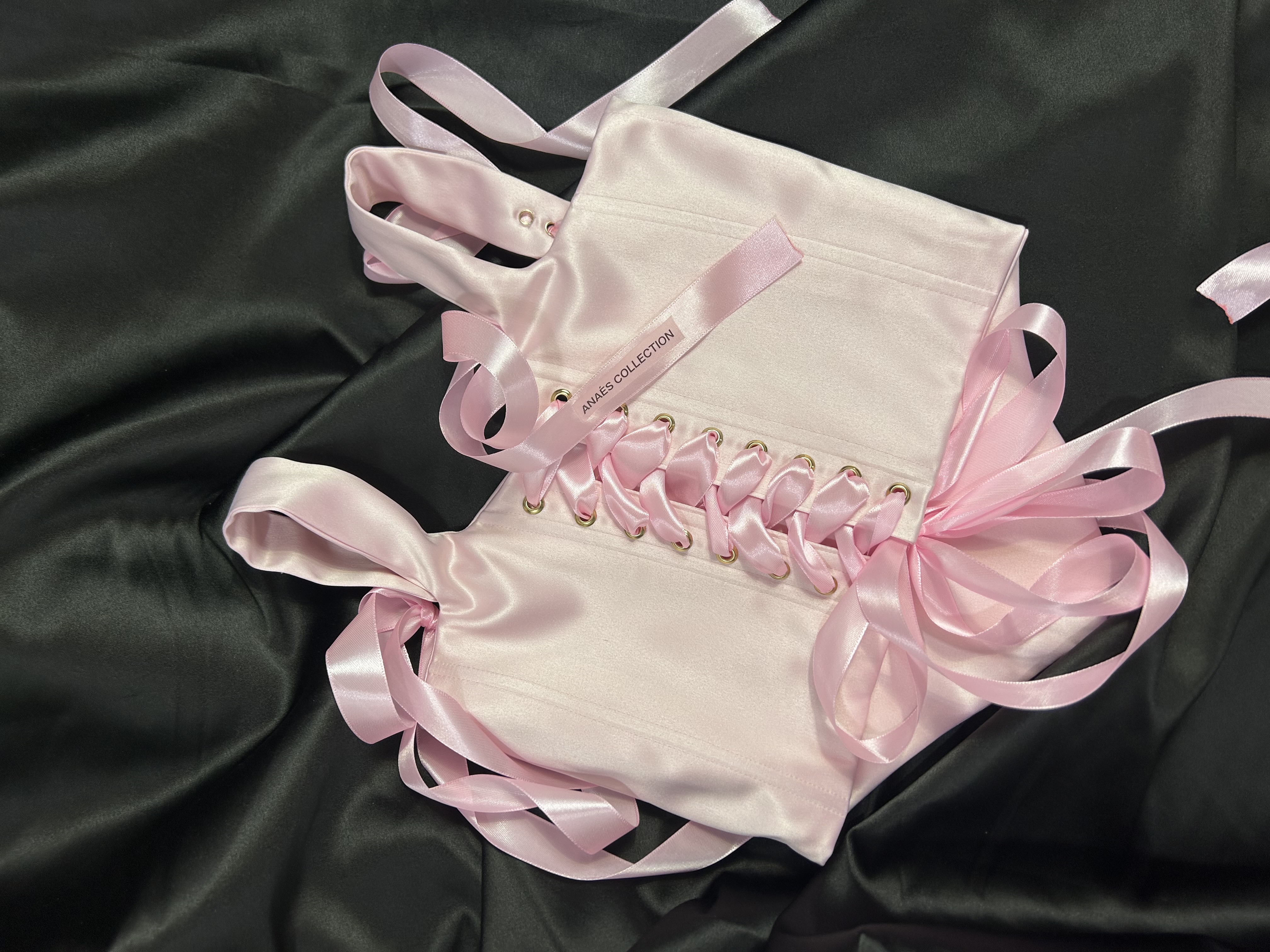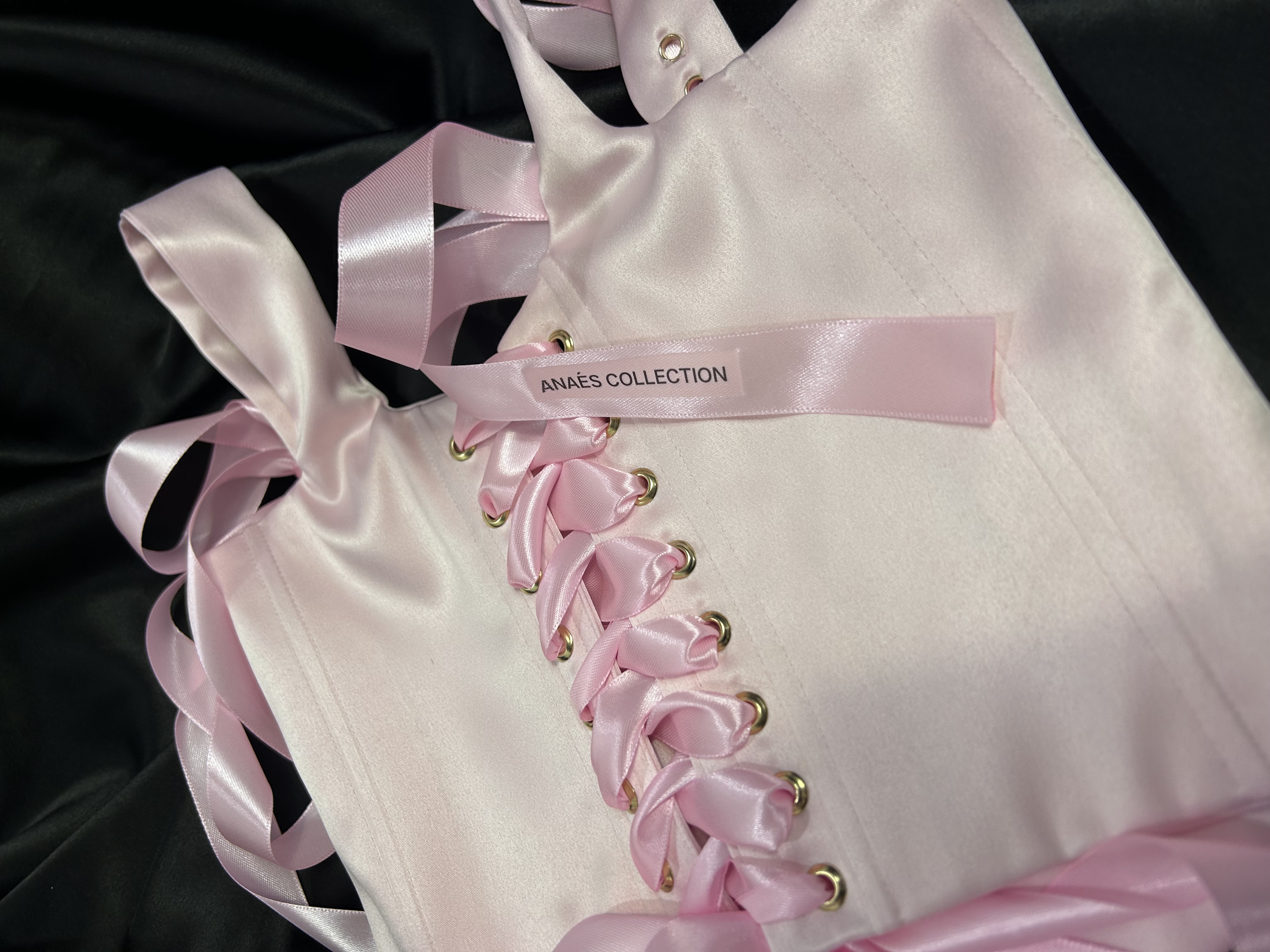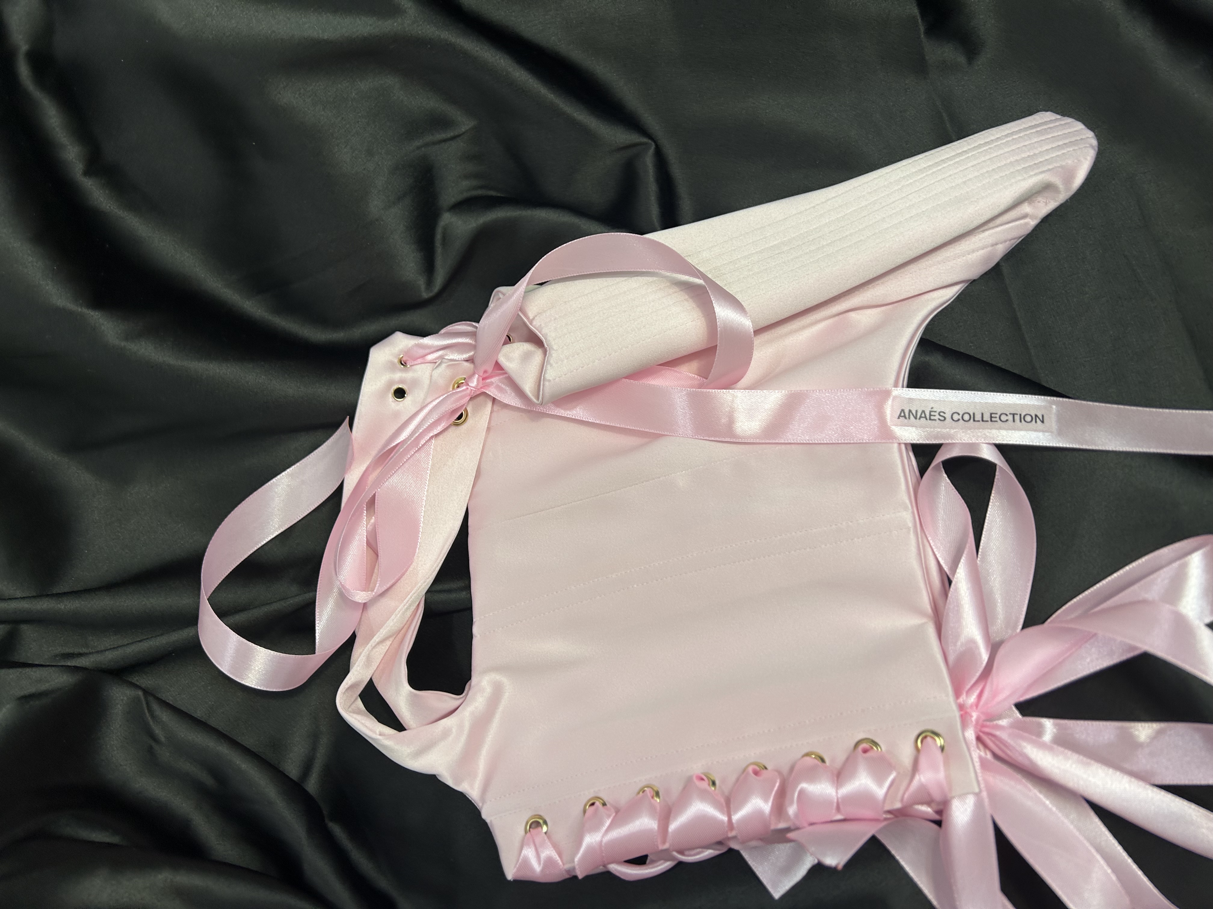 Realizat manual din tafta roz pudrat, Rose Allure îmbină finețea texturilor cu un design care celebrează feminitatea absolută.