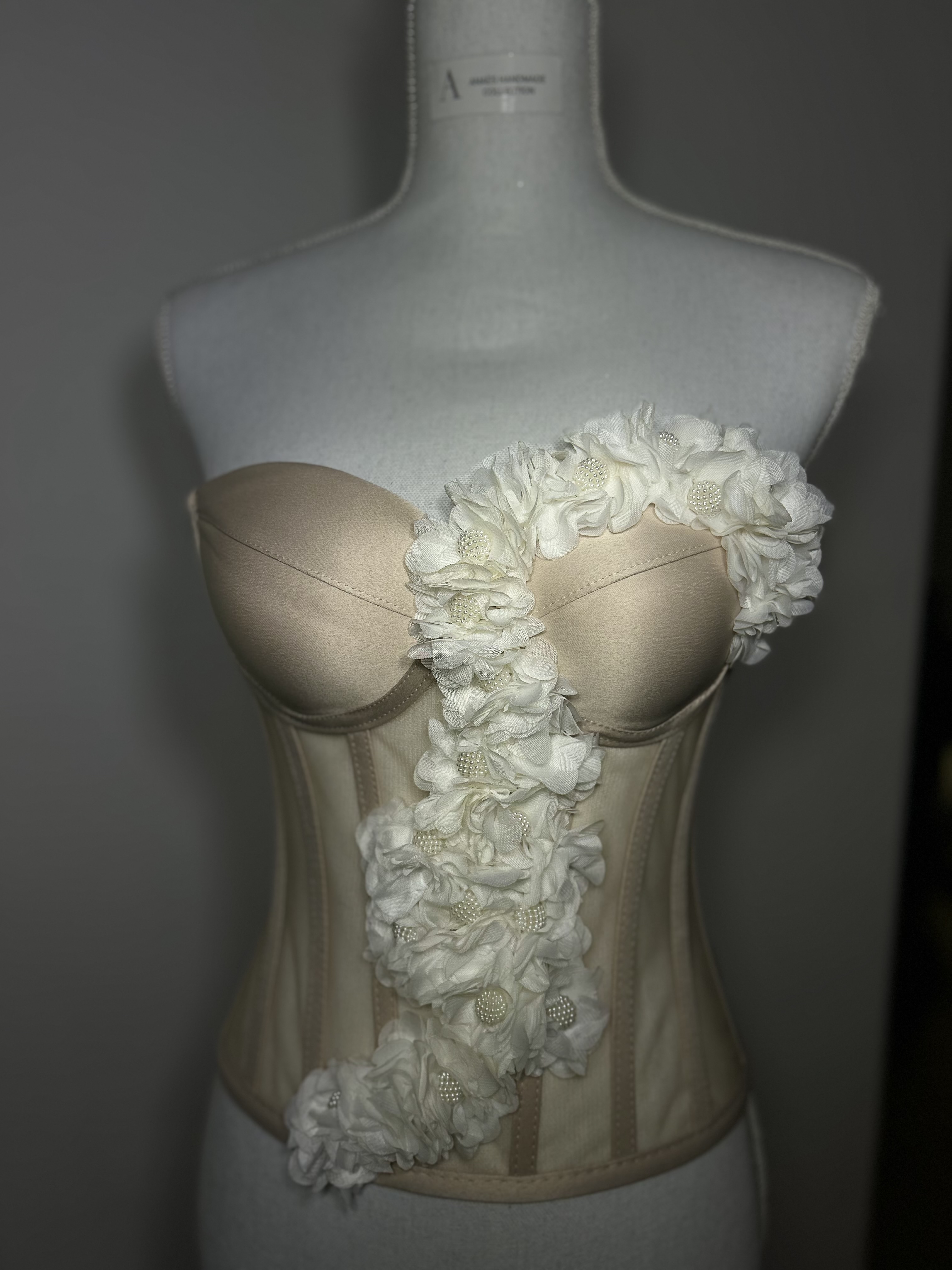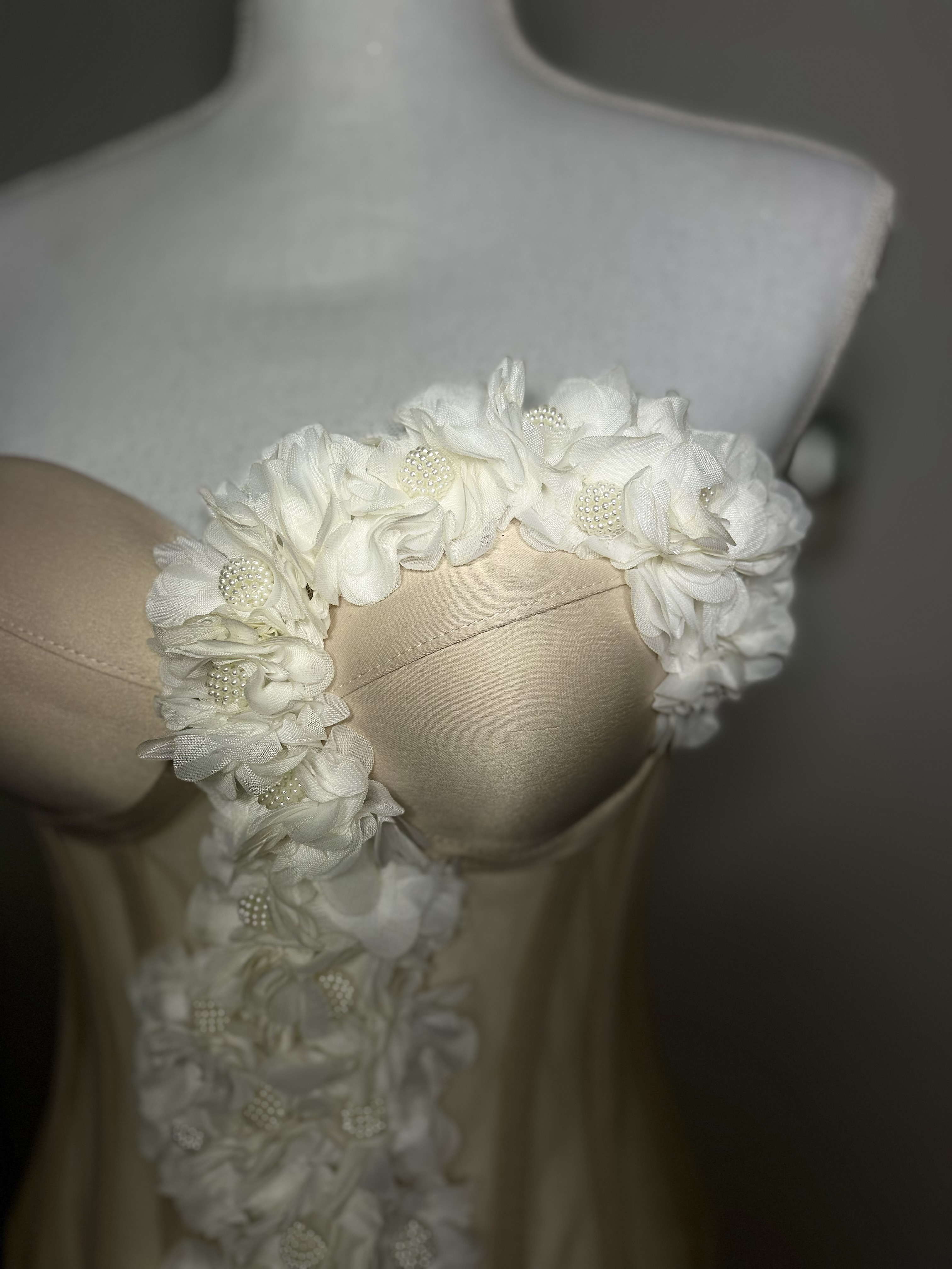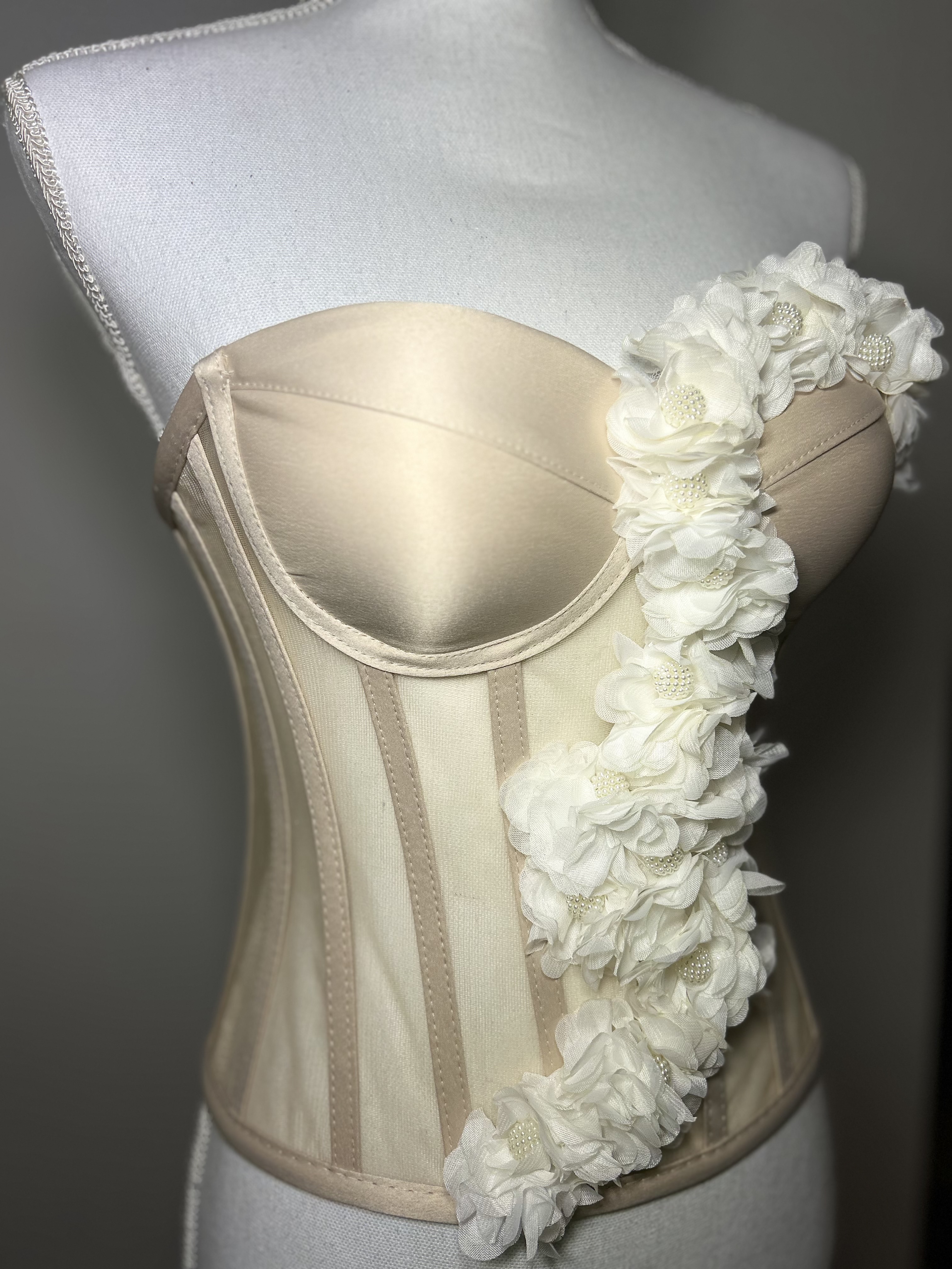 Un tribut adus grației naturale, Ivory Cascade îmbină structura clasică a corsetului cu delicatețea florilor ivoire🤍
